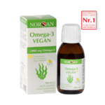 NORSAN Omega-3 Vegan (100 ml) ir unikāla, augstas kvalitātes vegāniska aļģu eļļa, kas apvieno mikroaļģu eļļu ar īpaši neapstrādātu bioloģisku olīveļļu. Dienas deva (5 ml jeb 1 tējkarote) nodrošina 2000 mg omega-3 taukskābju, tostarp DHS (dokozaheksaēnskābi) un EPS (eikozapentaēnskābi). Piemērots vegāniem, veģetāriešiem un grūtniecēm.
