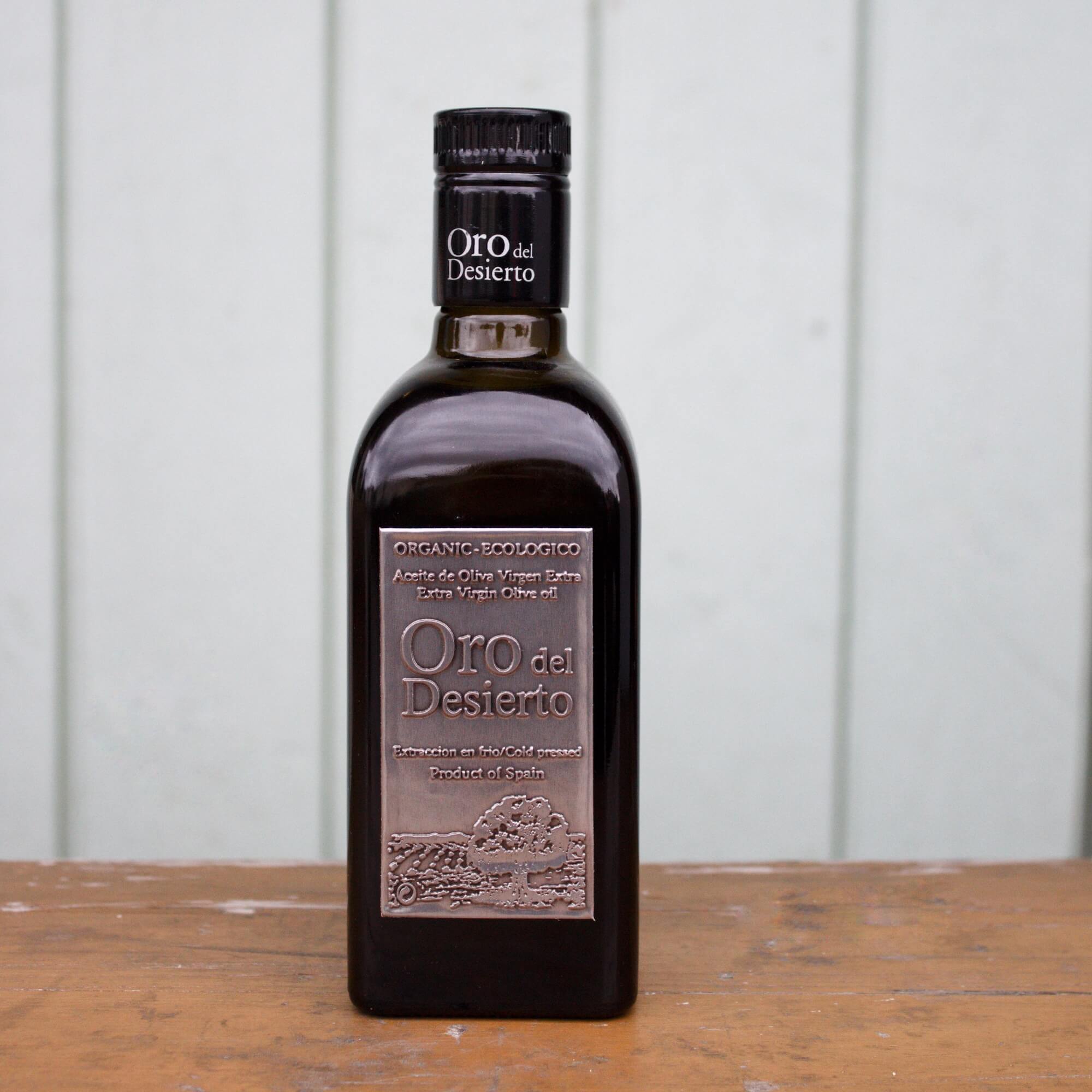 Oro del Desierto ir auksti spiesta olīveļļa (Extra Virgin) no kontrolētas bioloģiskās lauksaimniecības Spānijā. Olīveļļa ir saņēmusi daudzus apbalvojumus par savu augsto kvalitāti un tiek uzskatīta par vienu no labākajām olīveļļām pasaulē. Garša ir nedaudz piparota, pateicoties augstajam polifenolu saturam. Mūsu ieteikums ir izbaudīt šo olīveļļu salātos un tamlīdzīgos ēdienos.