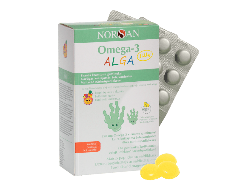 NORSAN Omega-3 ALGA Jelly – augu aļģu eļļas želejkonfektes ar tropu augļu garšu