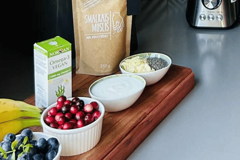 Krēmīgais musli deserts ar NORSAN Vegan Omega-3 eļļu